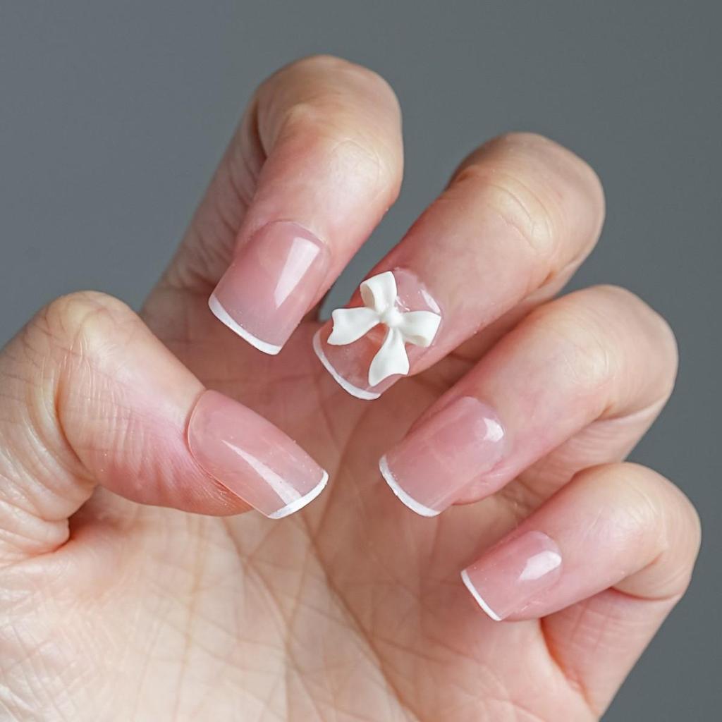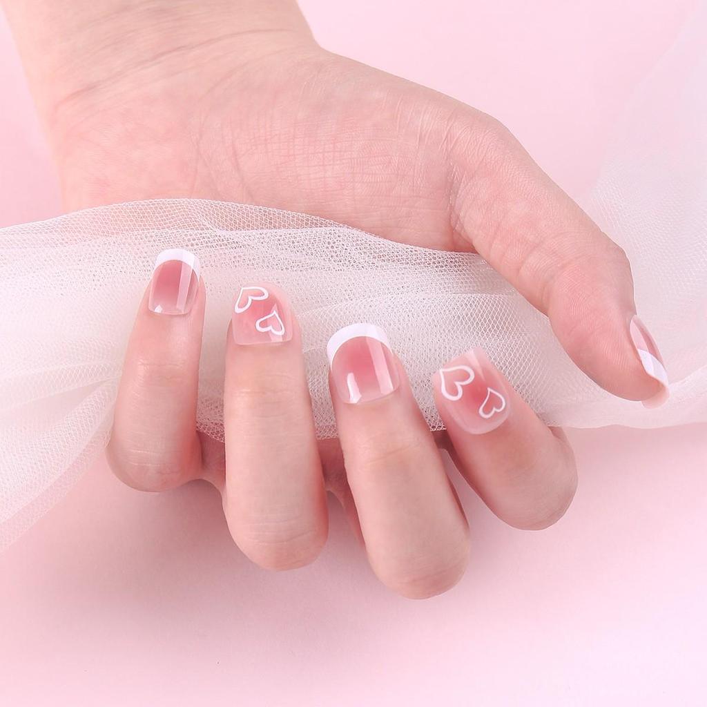Набор из 24 накладных ногтей с коротким градиентом белого цвета