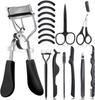 Щипцы для завивки ресниц с двухголовой складной расческой и набором из 4 предметов: В комплект входит многофункциональный косметический инструмент, щеточка для бровей, пинцет для накладных ресниц.