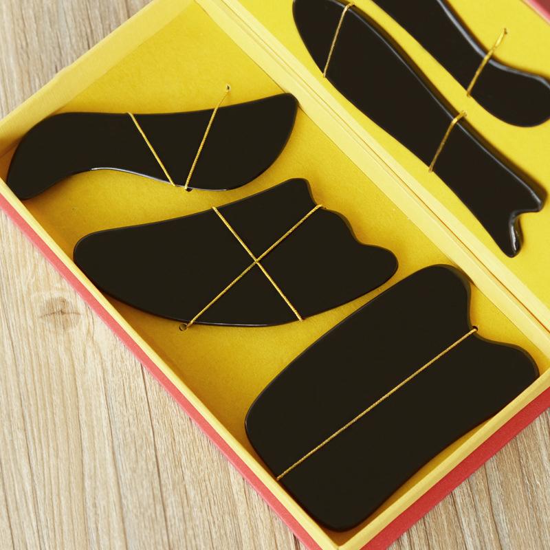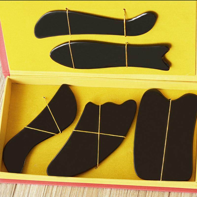 Натуральный черный рог буйвола скребковый массажный инструмент доска гуаша набор из 5 штук для тела спа акупунктурная терапия триггерные точки