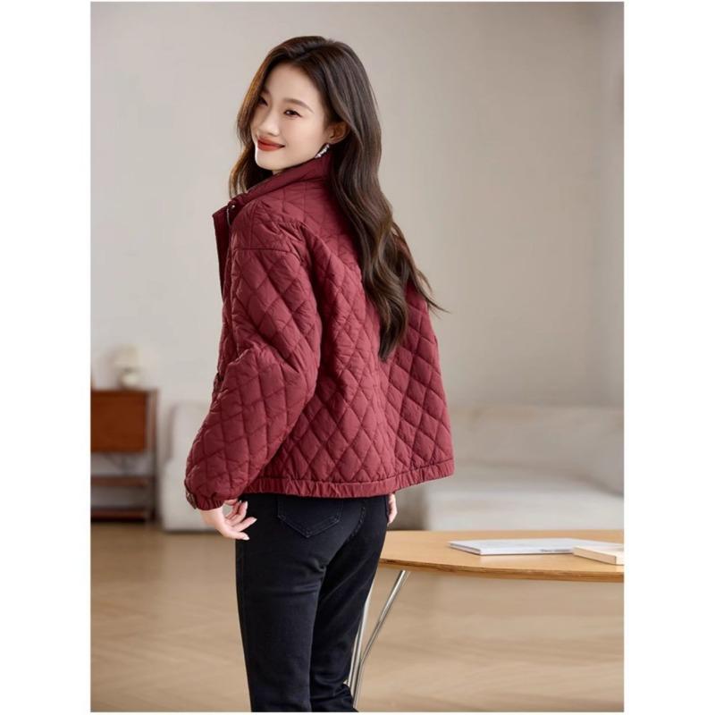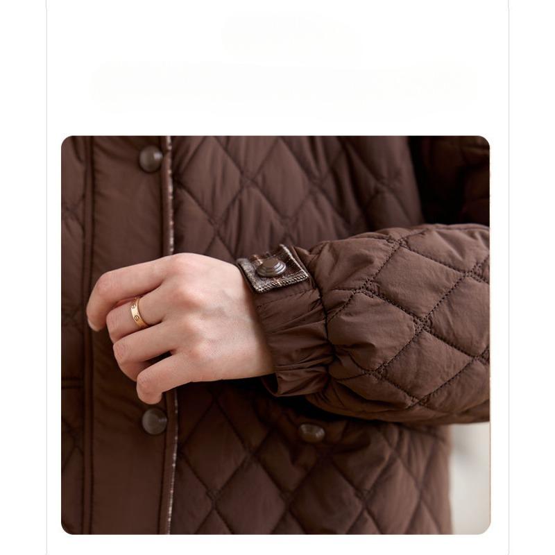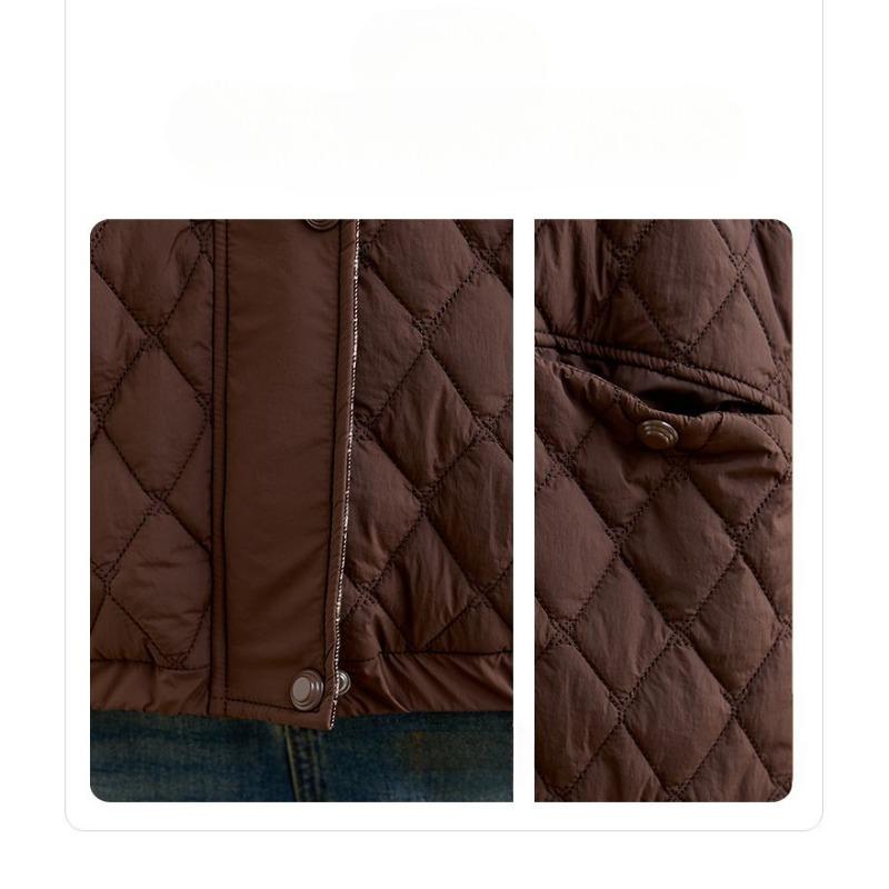 Модное свободное осенне-зимнее пальто с воротником-стойкой и ромбовидной сеткой из тонкого хлопка, куртка из хлопка для людей среднего и пожилого возраста