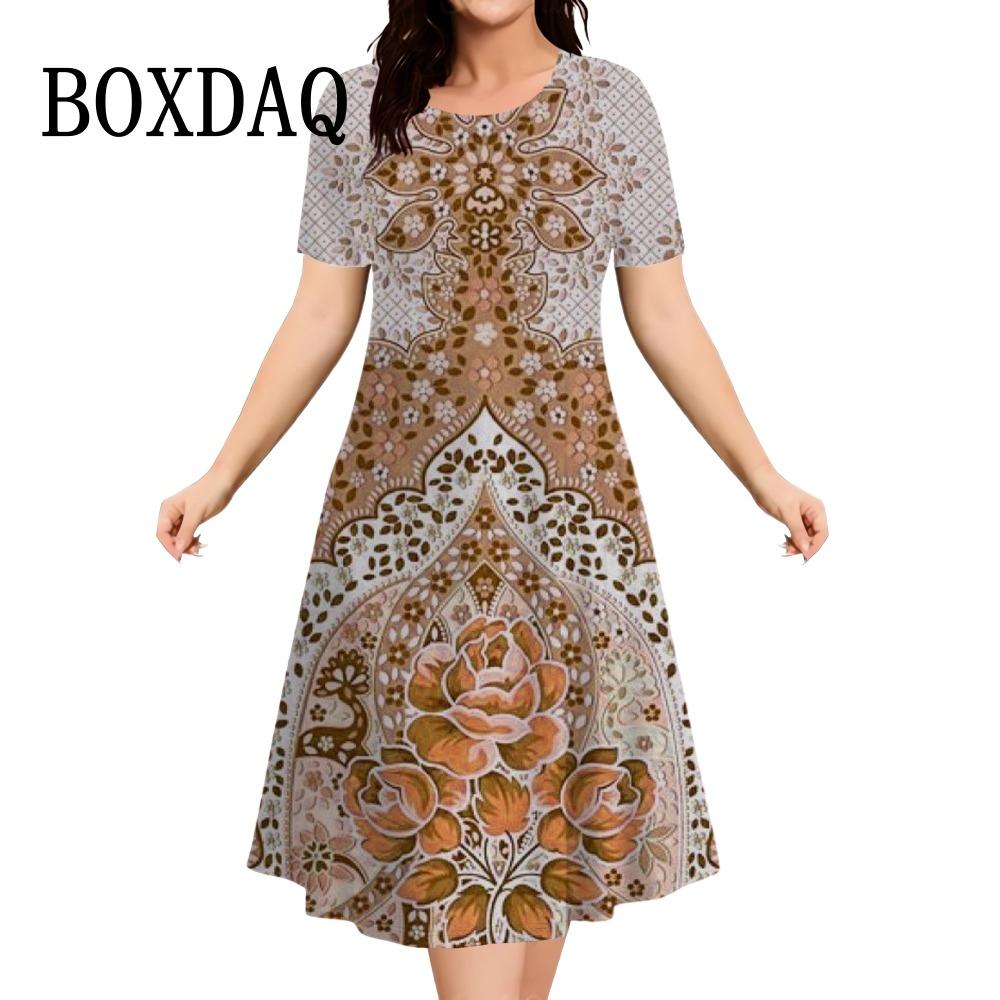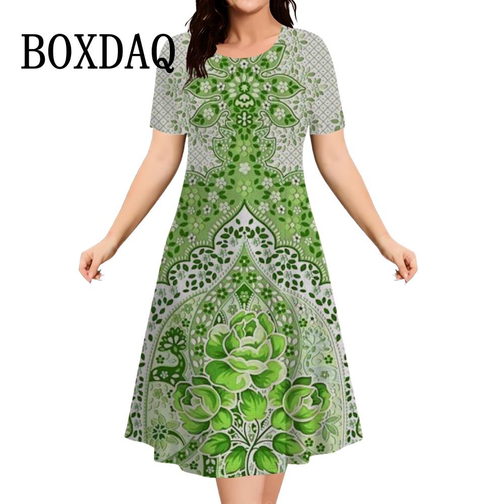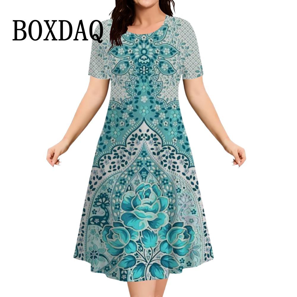 Синее женское платье с 3D-принтом и цветочным принтом больших размеров, летняя одежда, модное свободное платье А-силуэта с коротким рукавом, повседневные платья больших размеров