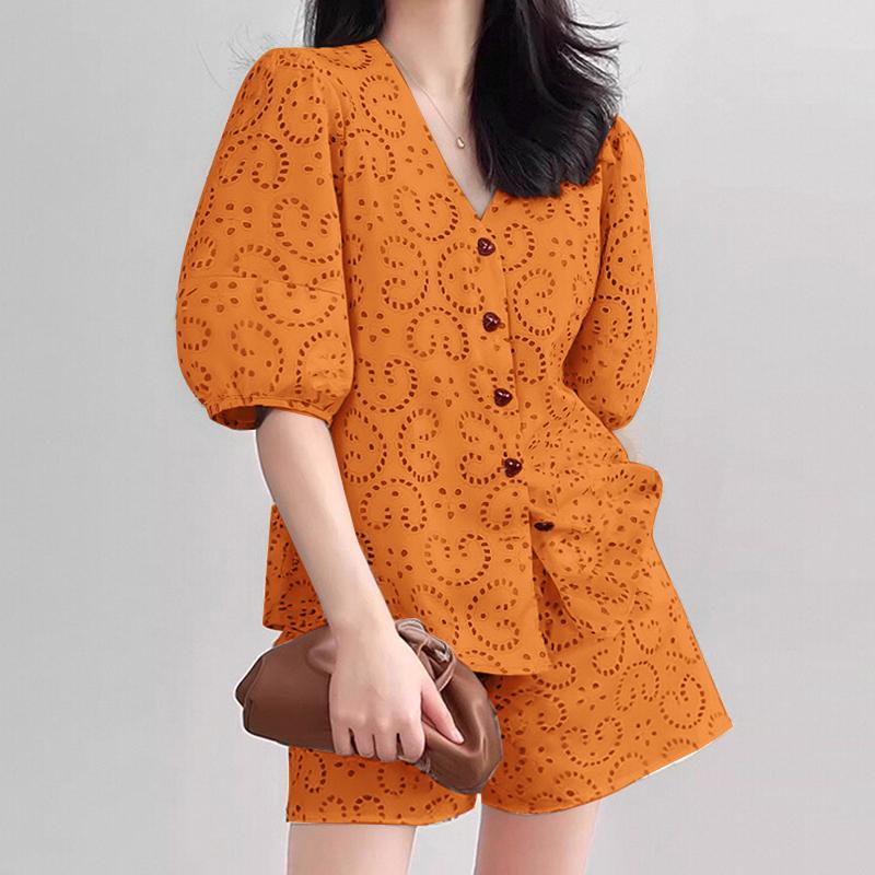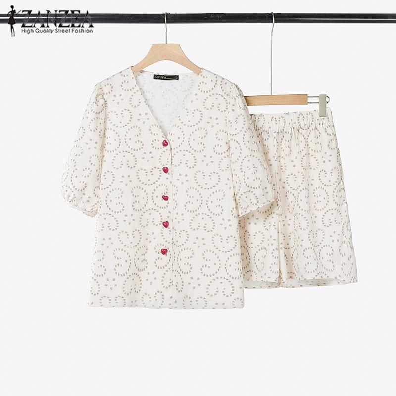 ZANZEA Женский летний костюм из двух частей с V-образным вырезом и короткими рукавами и карманами