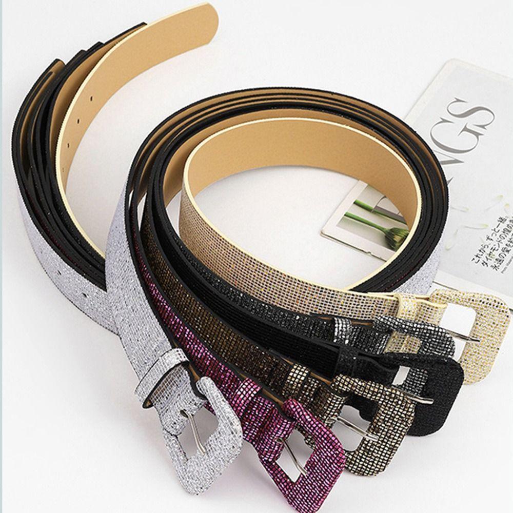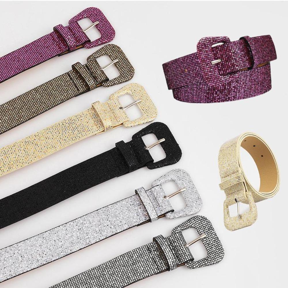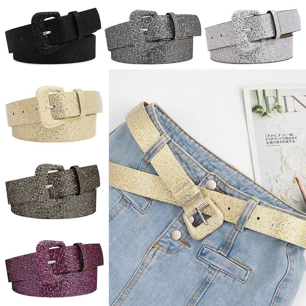 Винтажный повседневный декоративный пояс для брюк, платье, ремни с пряжкой, пояс с блестящими пайетками