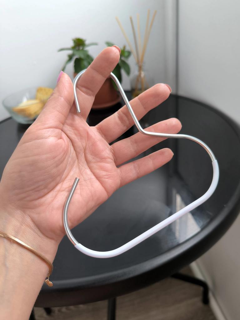 Вешалка ❤️ Вешалка имеет S-образную форму, что делает её удобной для подвешивания на перекладину. Изготовлена из металла, что обеспечивает прочность и долговечность. Такая вешалка идеально подойдет для хранения: 🔸шарфов и платков, 🔸ремней, 🔸галстуков, 🔸легких сумок, 🔸 бейсболок. S-образная форма позволяет экономить место в шкафу или гардеробной. Вещи легко снимаются и вешаются обратно. Вешалку можно использовать в разных местах - в шкафу, в ванной комнате, на кухне и т.д. Эта вешалка - практичный и удобный аксессуар для хранения различных вещей. Она помогает организовать пространство и держать аксессуары в порядке. Удачных покупок ❤️ Ваша Вика 🙂