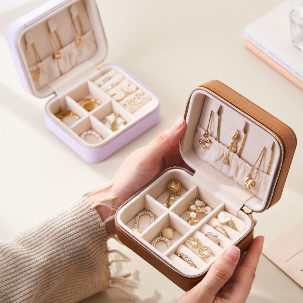Чехол-органайзер для сережек и колец на молнии, однотонный, портативный, для хранения украшений, для путешествий