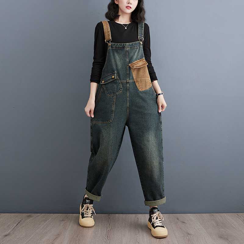 Лоскутный карман на подтяжках женские весенне-осенние модные винтажные повседневные джинсы премиум-класса джинсовый комбинезон — купить товар онлайн с бесплатной доставкой до всему миру!