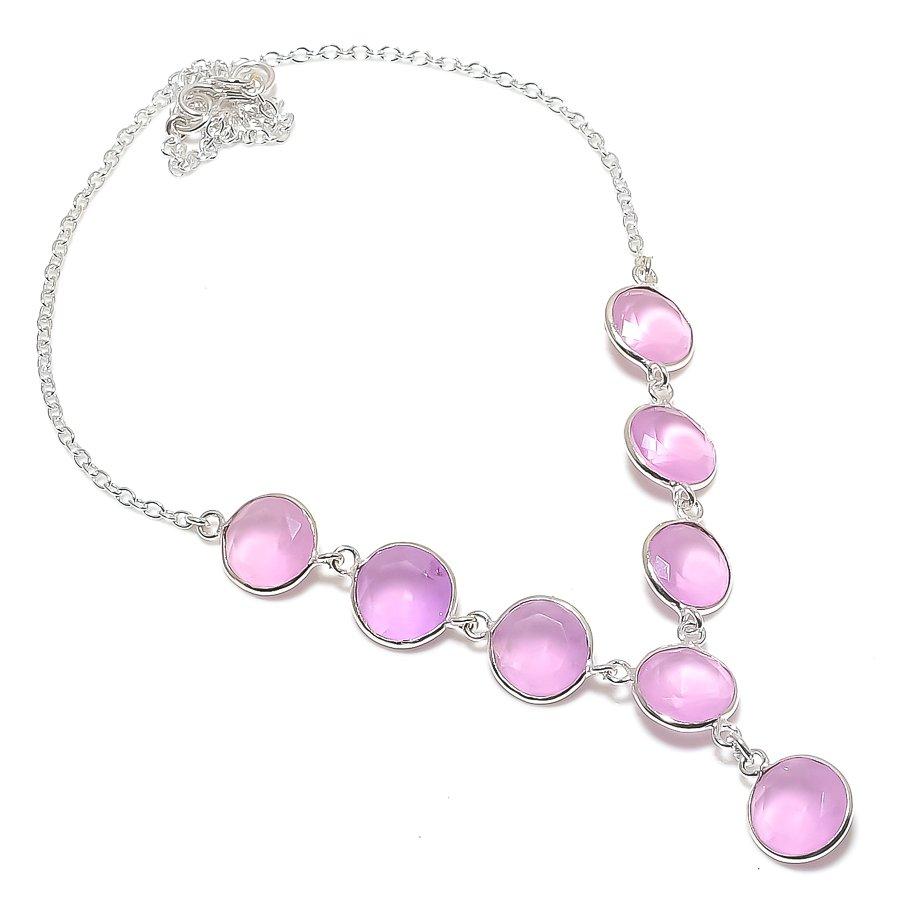 Натуральный розовый халцедон драгоценный камень 925 стерлинговое серебро ювелирное изделие ожерелье 18" S0A77