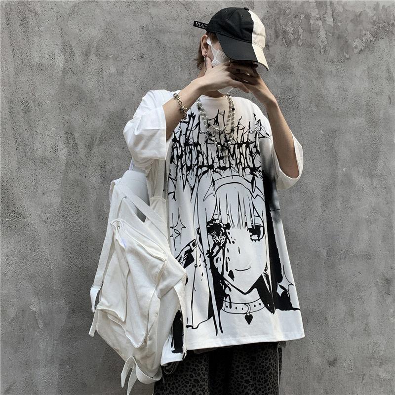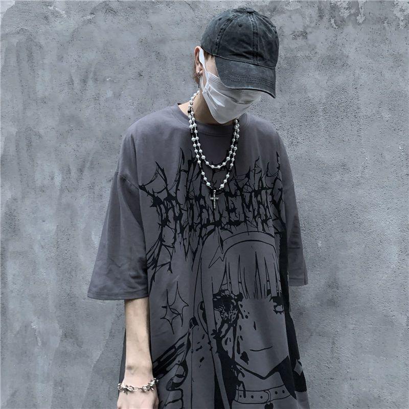 Мужская футболка в стиле аниме, летняя темная футболка с принтом черепа в готическом стиле, свободная футболка большого размера с короткими рукавами, уличный топ