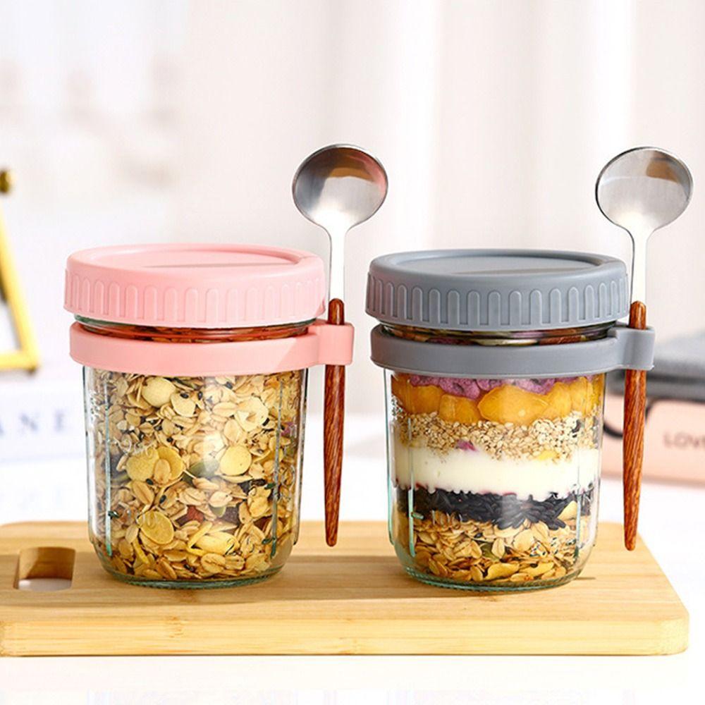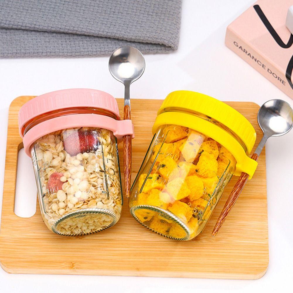 With Spoon Mason Jars Cereal Nut Yogurt Salad Cup Overnight Oat Glass Cup Multifunction Tumbler