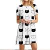 Платье с красочным рисунком и принтом кошек, с короткими рукавами, женское платье Kawaii, летняя мода, круглый вырез, уличная повседневная свободная одежда