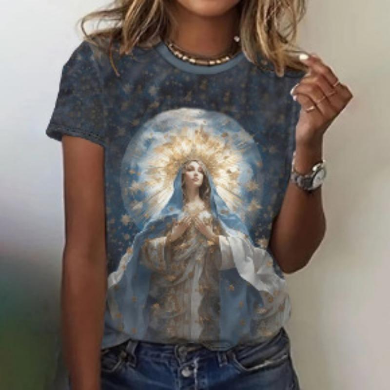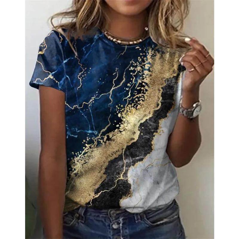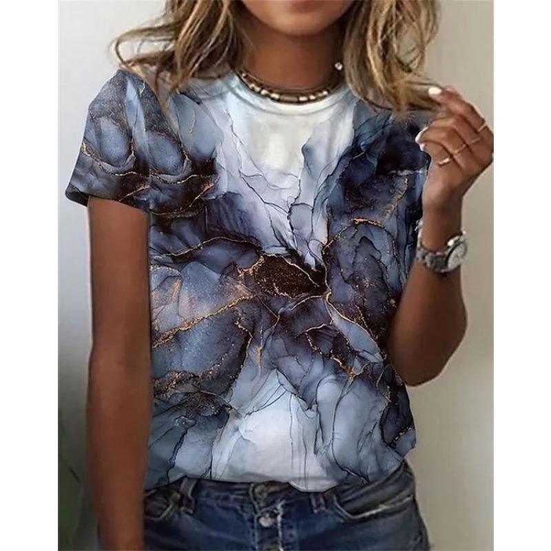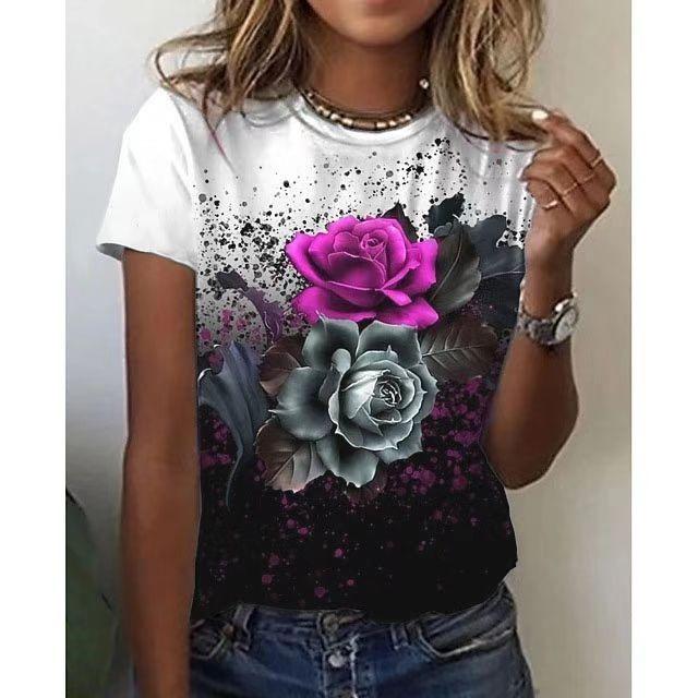 Летний топ с круглым вырезом и 3D цветочным принтом в стиле масляной живописи, модные повседневные женские футболки с коротким рукавом