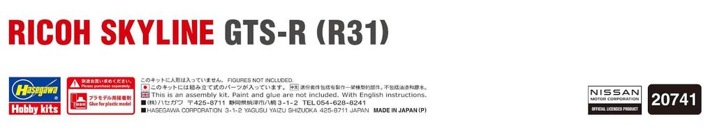 Hasegawa Ricoh Skyline Пластиковая модель 20741 1/24 GTS-R (R31) (Машина)