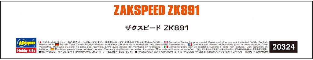 Hasegawa Модель автомобиля серии Zakuspeed ZK891 Пластиковая модель 20324 1/24