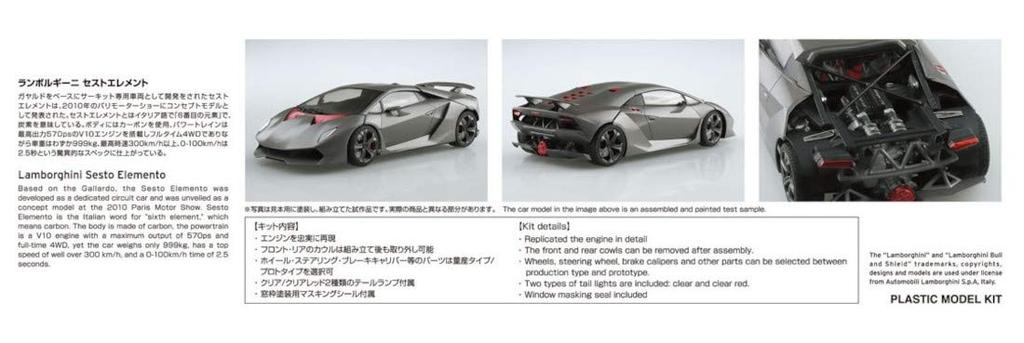 AOSHIMA The Super Car Series 2010 Lamborghini Sesto Element Пластиковая модель 1/24 № 14