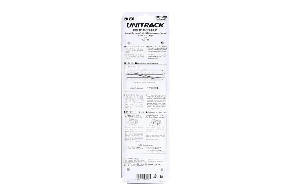 KATO Двухпутная железнодорожная колея N, одинарный переезд, 4 правых, принадлежности для железнодорожных моделей, нет. 20-231