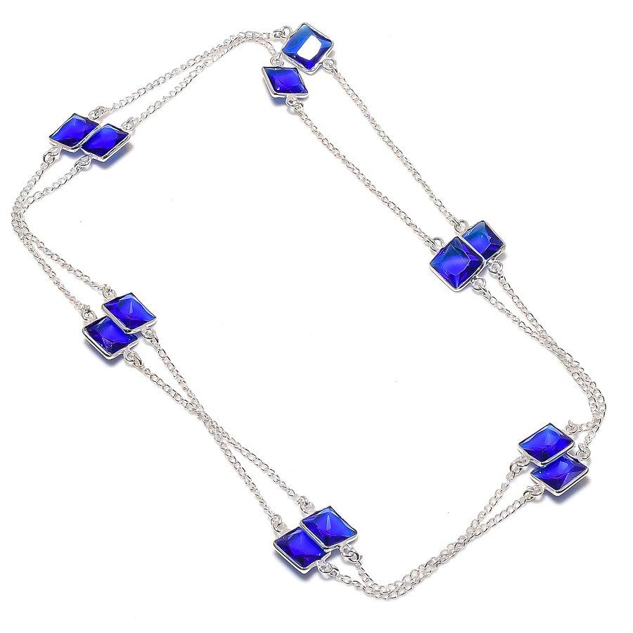 Лондонский голубой топаз Ручная работа Серебро 925 пробы Ожерелье 18" g2u35