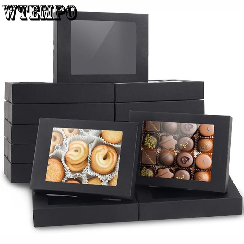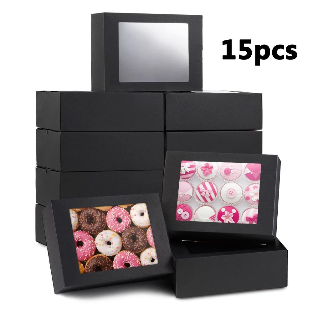 15 шт. Черная подарочная коробка с окошком, бумажные коробки для угощений, подарочная упаковочная коробка для вечеринок, свадеб, юбилеев, вечеринок, ювелирных изделий, витрина