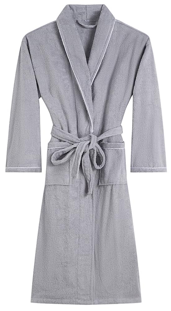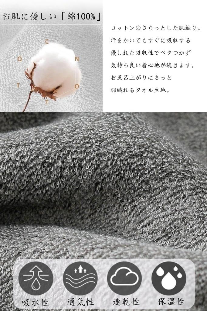 [100% хлопок с хорошим водопоглощением] Этот халат изготовлен из 100% хлопчатобумажной ткани, которая хорошо впитывает воду и быстро высыхает, даже если намокнет. Он отлично впитывает воду, сохраняет тепло и гибок, что делает его удобным халатом, который можно быстро надеть после принятия ванны, чтобы не замерзнуть.. Он привлекателен тем, что имеет идеальную толщину и легко высыхает после стирки.. Он унисекс, поэтому рекомендуется парам и парам подбирать его в паре.