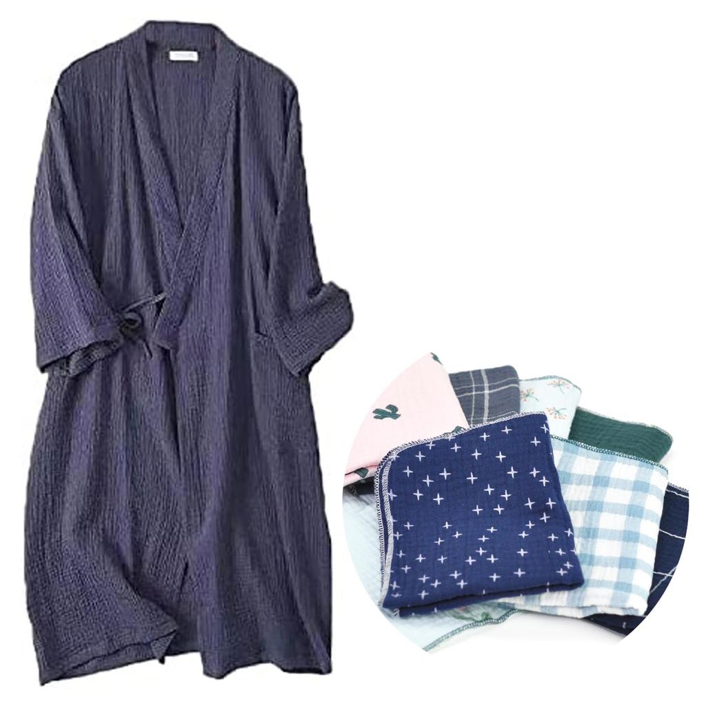 Халат из двойной марли, хлопковое полотенце для рук, в комплект входит полотенце, ткань впитывает влагу, быстро сохнет после купания, нежная текстура, хлопковый материал, унисекс, комнатная одежда