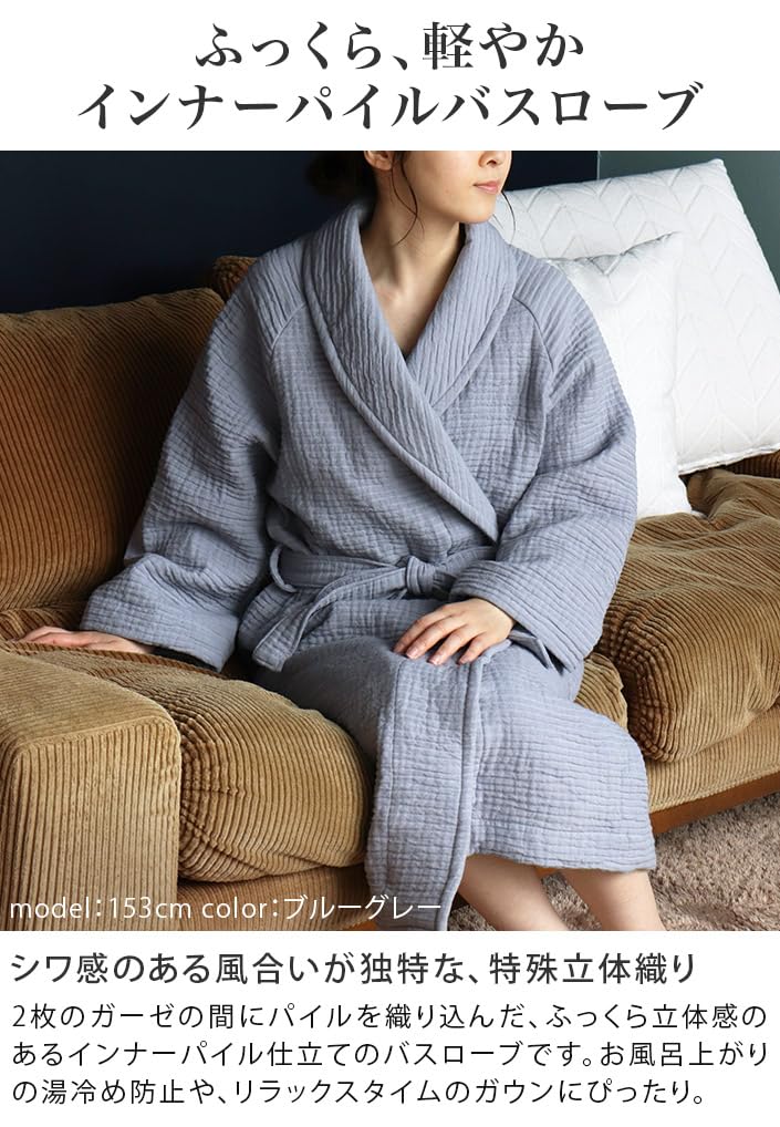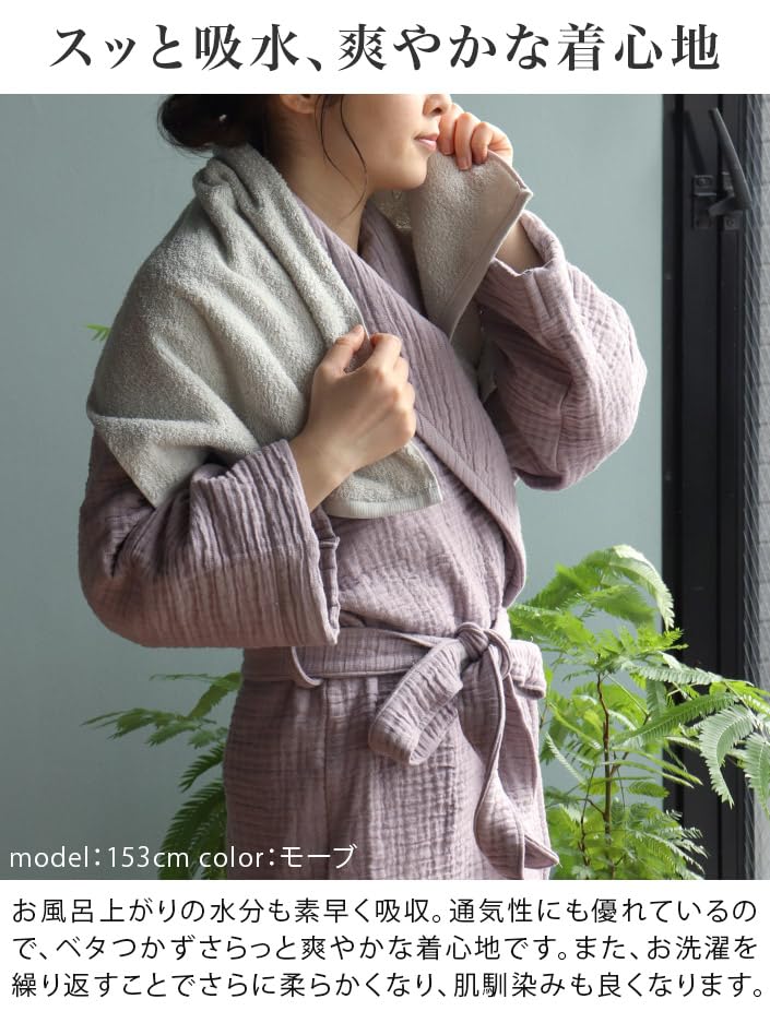 Японский 3D Внутренняя быстрая длина приблизительно серый быстро впитывающий [Hiorie] Халат, марля, женский, мужской, халат, ворс, сушка, 115-120 см, бежевый,