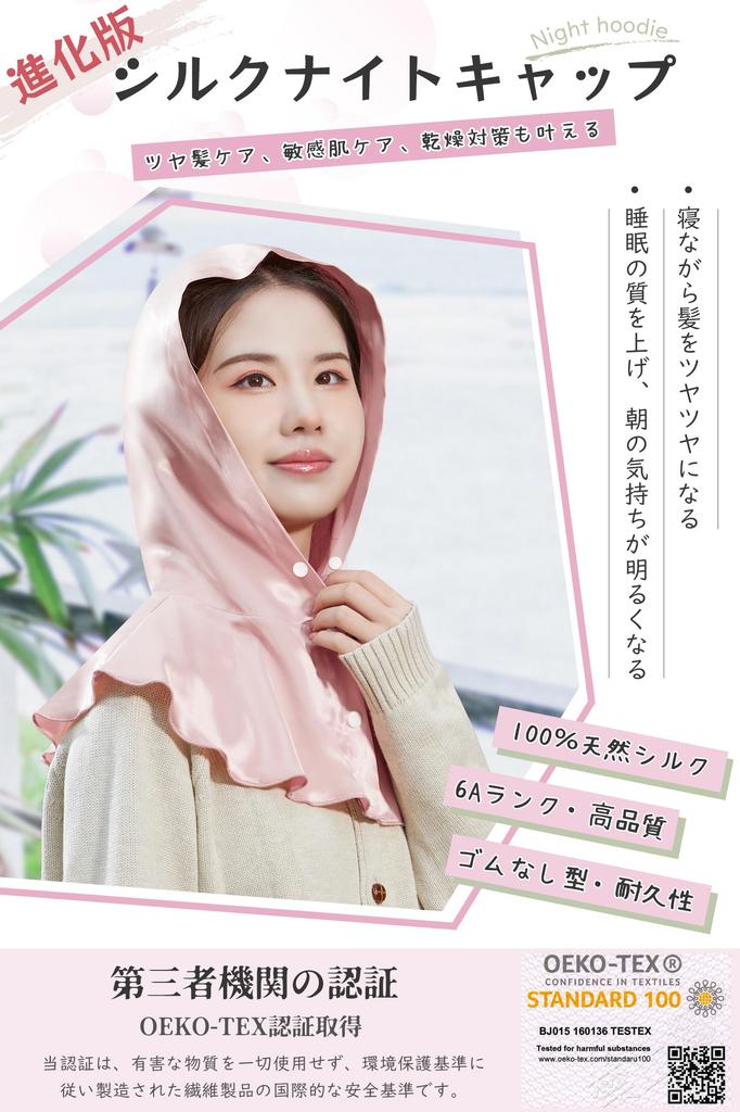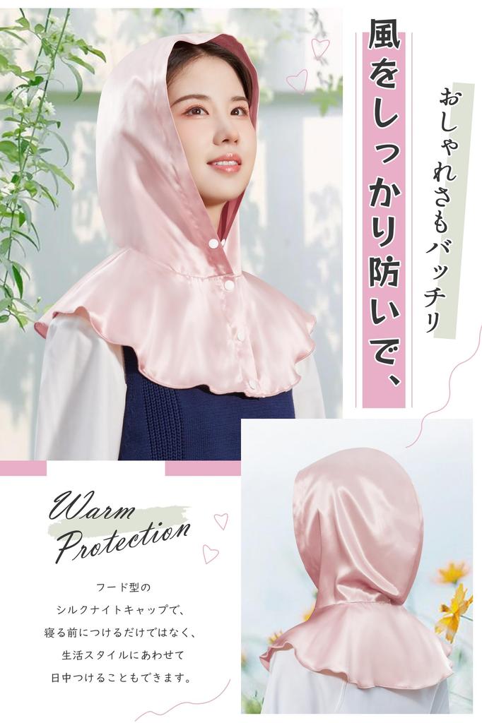 [Модная повседневная одежда] Этот шелковый ночной колпак в форме капюшона можно носить не только перед сном, но и в течение дня, в зависимости от вашего образа жизни.. Создайте естественный стиль, который не будет выглядеть неуместно, когда вы выйдете из дома! Обильное количество шелковой ткани защищает голову и шею, защищает от ветра и выглядит очень модно.
