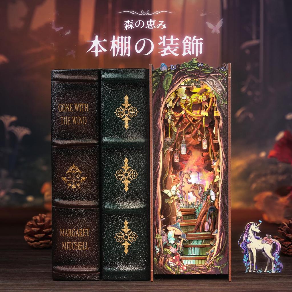 [Комплект «Книжный уголок» — Единорог в лесу] Миниатюрный книжный уголок Благодаря насыщенным цветам и природным элементам мы создаем фантастическое и теплое пространство, пробуждая в людях любовь и восхищение природой, выражая гармоничное сосуществование людей и природы и направляя людей к густому лесу через разноцветные грибы и заветные подвески.. Откройте для себя бутылочное дерево, домик на дереве с щебечущими птицами и, наконец, единорога, символ удачи, и обретите душевное спокойствие и чувство принадлежности через исследование.