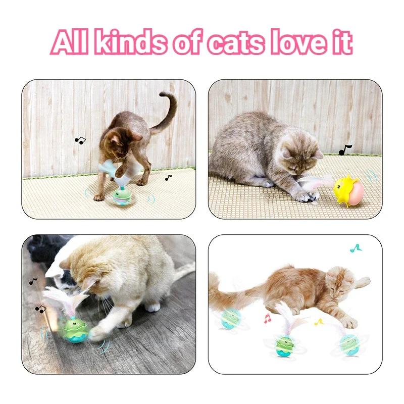 Игрушки для кошек Интерактивная игрушка для кошек Автоматическая электрическая игрушка для кошек, вращающаяся, с перьями, с цветным светом