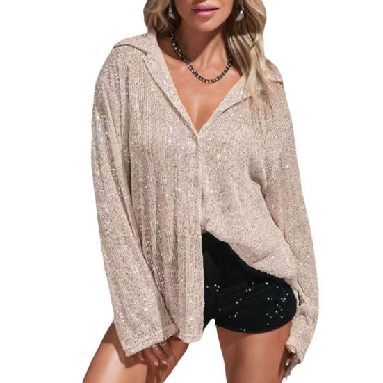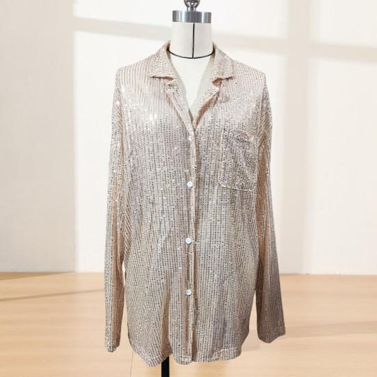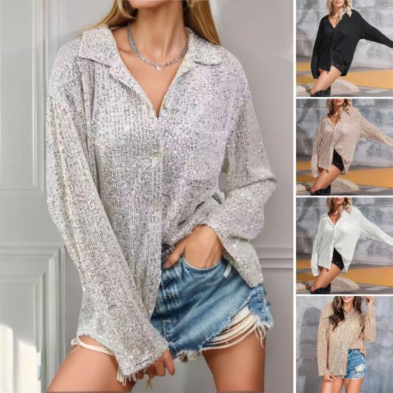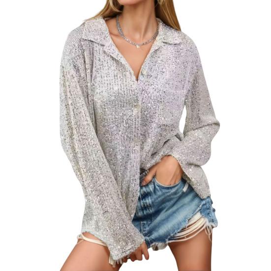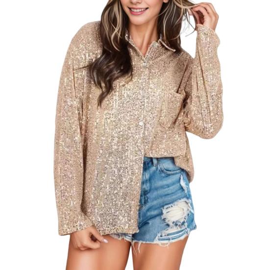 Украшения из пайеток добавят вашему образу нотку гламура, а короткий дизайн подчеркнет элегантность.. Обычная версия этой рубашки подходит для разных типов телосложения, обеспечивая повседневный, но модный образ..