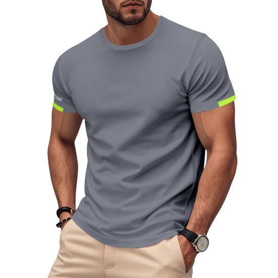 Повседневный стиль: Однотонный дизайн и круглый вырез этой мужской футболки обеспечивают универсальный вид, который можно легко сочетать с повседневными шортами, брюками или джинсами, создавая модный ансамбль.