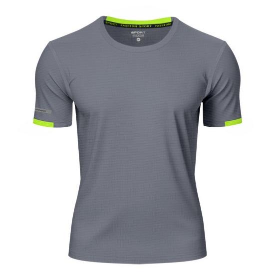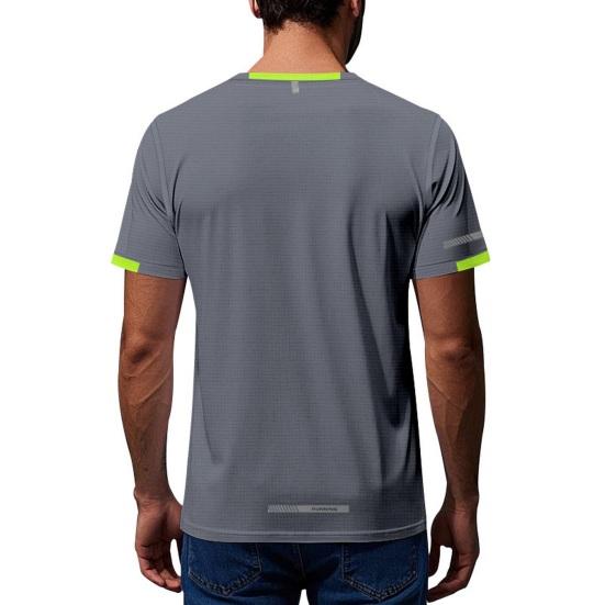 Дышащий материал: Эта мужская футболка, изготовленная из смеси полиэстера и спандекса, мягкая и дышащая, обеспечивает комфорт в течение всего дня.