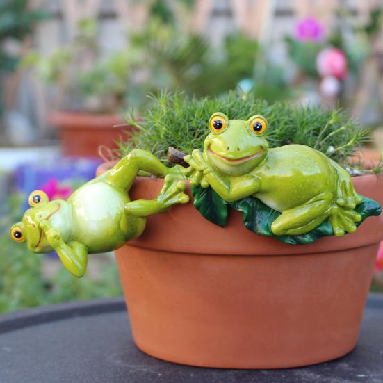 Причудливый декор сада: Украсьте свои цветочные горшки этой очаровательной лягушкой из смолы, добавив нотку индивидуальности и причудливости вашему уличному пространству.