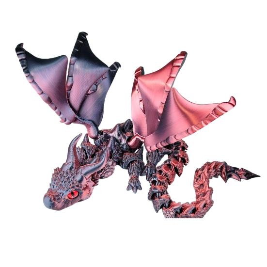 Изысканный и реалистичный дизайн: Используя передовую технологию 3D-печати, эта модель дракона может похвастаться высокой точностью и сложными деталями.. Дизайн отражает разные уровни блеска под разными углами, что делает его визуально потрясающим дополнением к любой коллекции или декору.