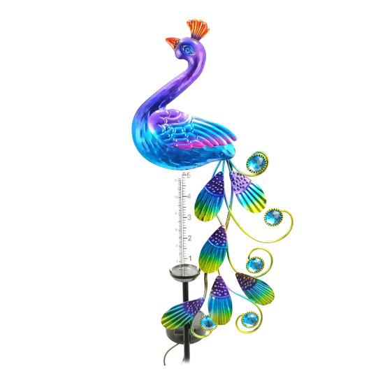 Причудливое очарование: Дизайн этого дождемера, вдохновленный павлином, наполнит ваш сад яркими цветами и игривой эстетикой, выступая одновременно в качестве функционального инструмента для измерения осадков и восхитительного украшения для улицы, которое повысит визуальную привлекательность вашего открытого пространства.