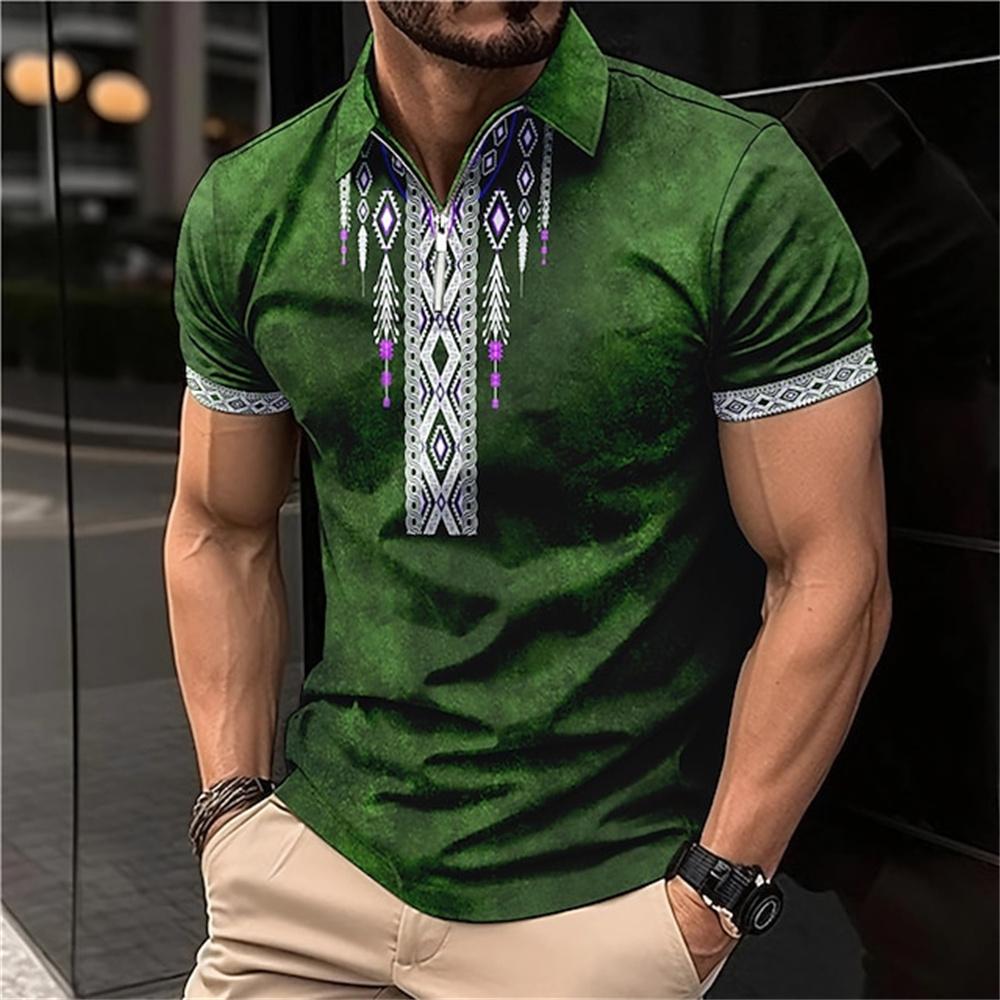 Мужские рубашки-поло в этническом стиле на молнии, винтажная мужская рубашка с коротким рукавом на молнии, большие размеры, футболки с лацканами и 3D-графикой, повседневная толстовка