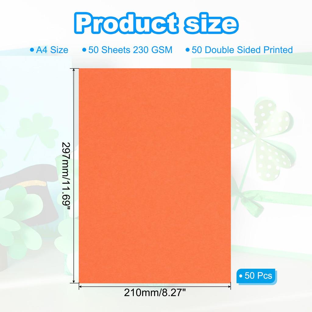 Specifications Material: Wood color: Orange Size: A4 (297 x 210mm / 11.69 x 8.27inch) Packing list: 100 sheets of colored cardboard