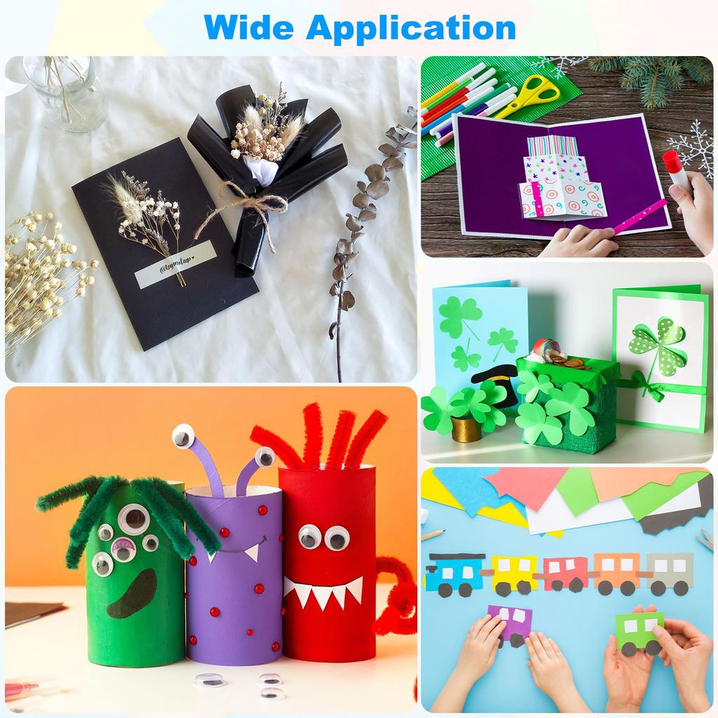These brightly colored cardstock papers can be used for paper crafts such as cards, scrapbooks, invitations, birthday cards, gift wrapping, paper sculptures, and are also a great choice for teachers to use in the classroom. In addition, cardboard can also be used as decoration for weddings, anniversaries, birthdays, parties, etc., and can also be used for painting.