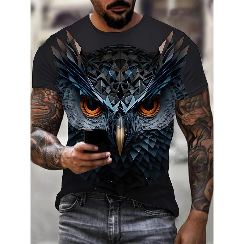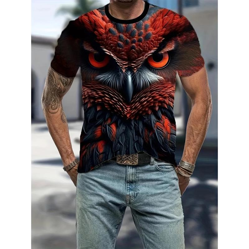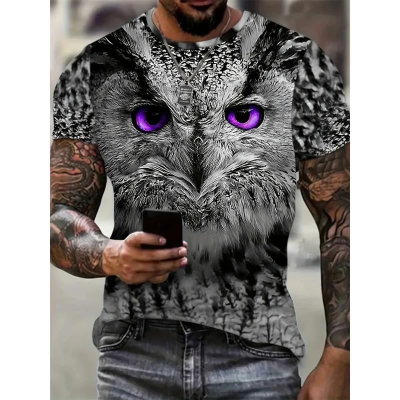 Футболка с принтом 3D-цветной крутой совы для мужчин, забавный рисунок животных, футболки с короткими рукавами, уличные топы, футболки больших размеров с круглым вырезом