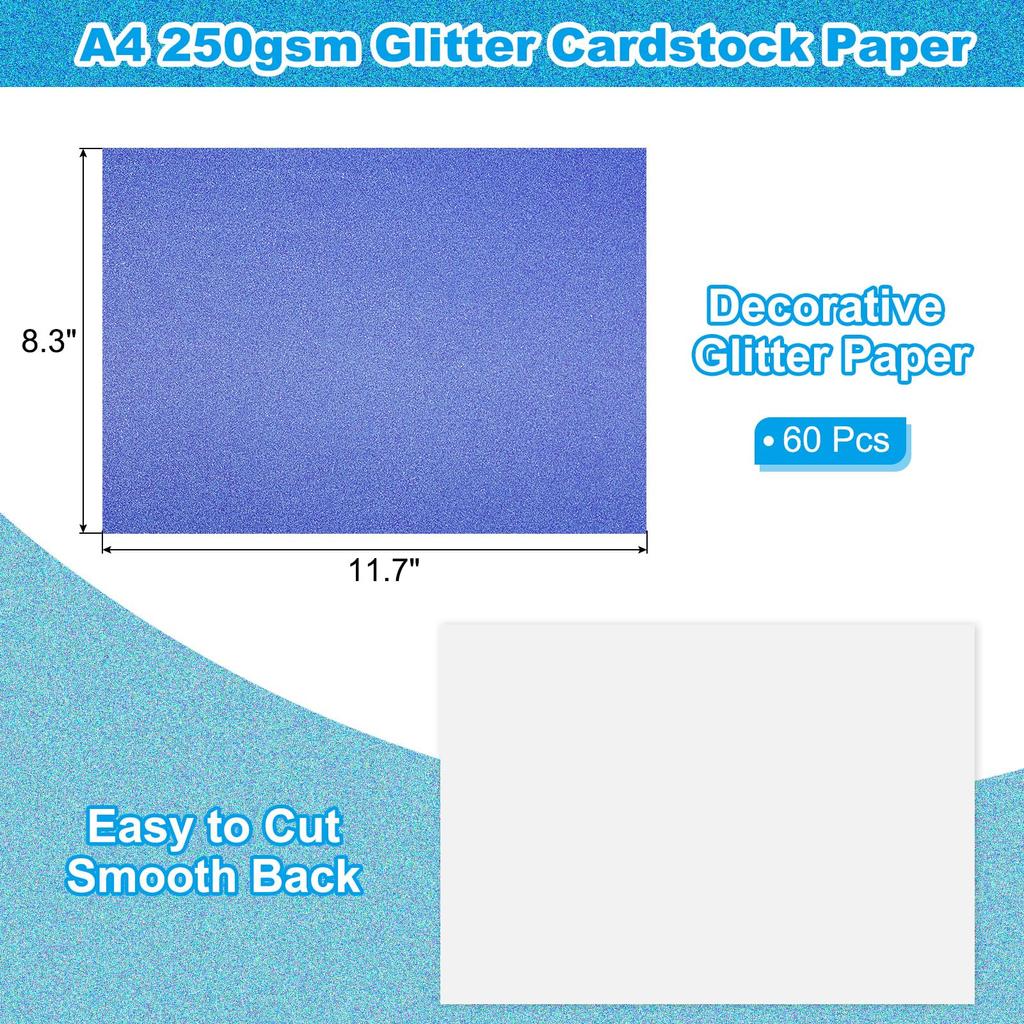 PREMIUM GLITTER CARDSTOCK: Comes with 60 sheets of dark blue glitter paper, these sheets are rectangular A4 size (8.3 x 11.7 inches), each sheet is 250gsm/92lb thick texture, with excellent texture and hand feel, perfect for decoration and packaging.