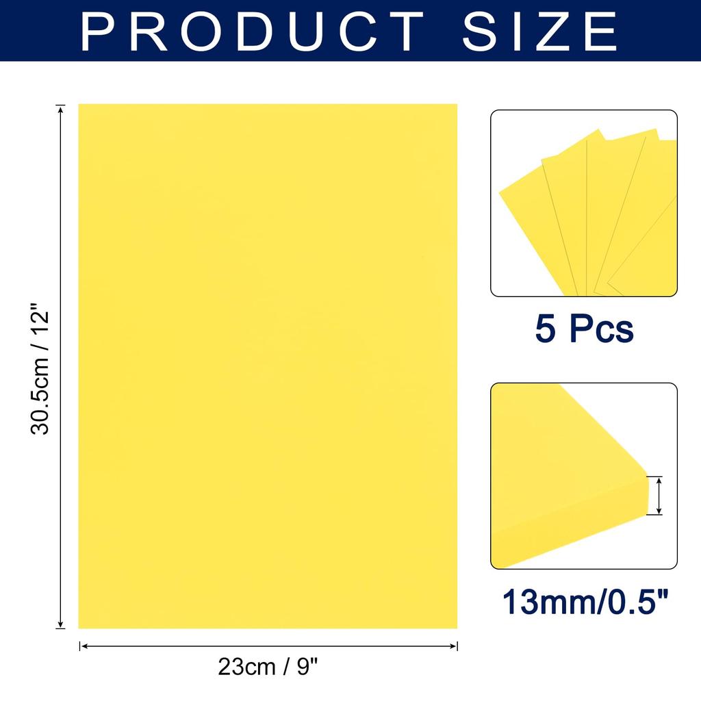 цвет: желтый; длина: 30,5 см / 12 "; Ширина: 23см / 9"; Толщина: 13 мм/0,5"; 5 листов пены EVA в упаковке