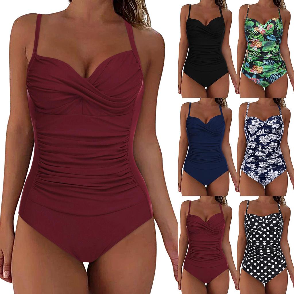 Летняя пляжная одежда, плиссированный базовый женский купальник на подтяжках, винтажный облегающий купальник с открытой спиной и подкладкой — купить товар онлайн с бесплатной доставкой по всему миру!
