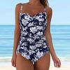 Летняя пляжная одежда, плиссированный базовый женский купальник на подтяжках, винтажный облегающий купальник с открытой спиной и подкладкой