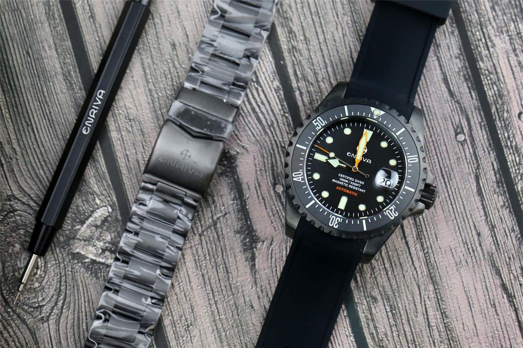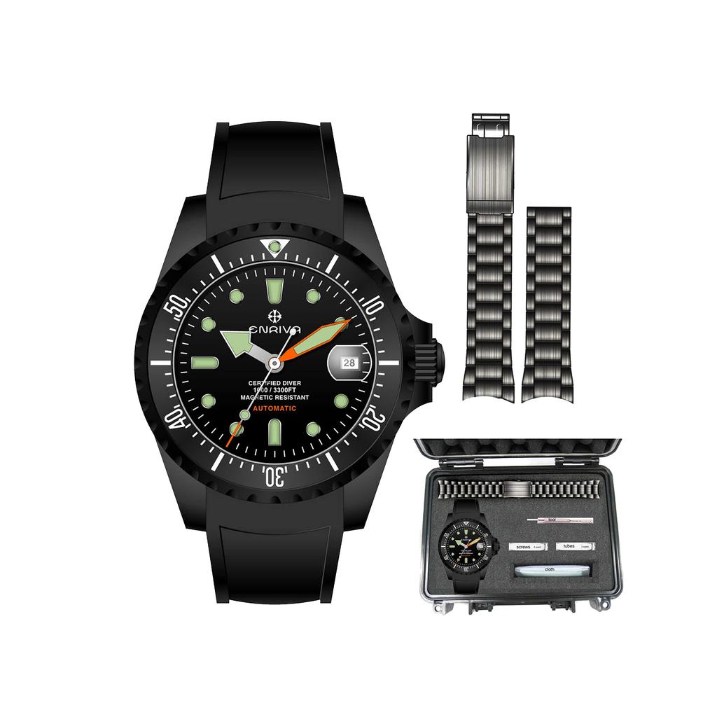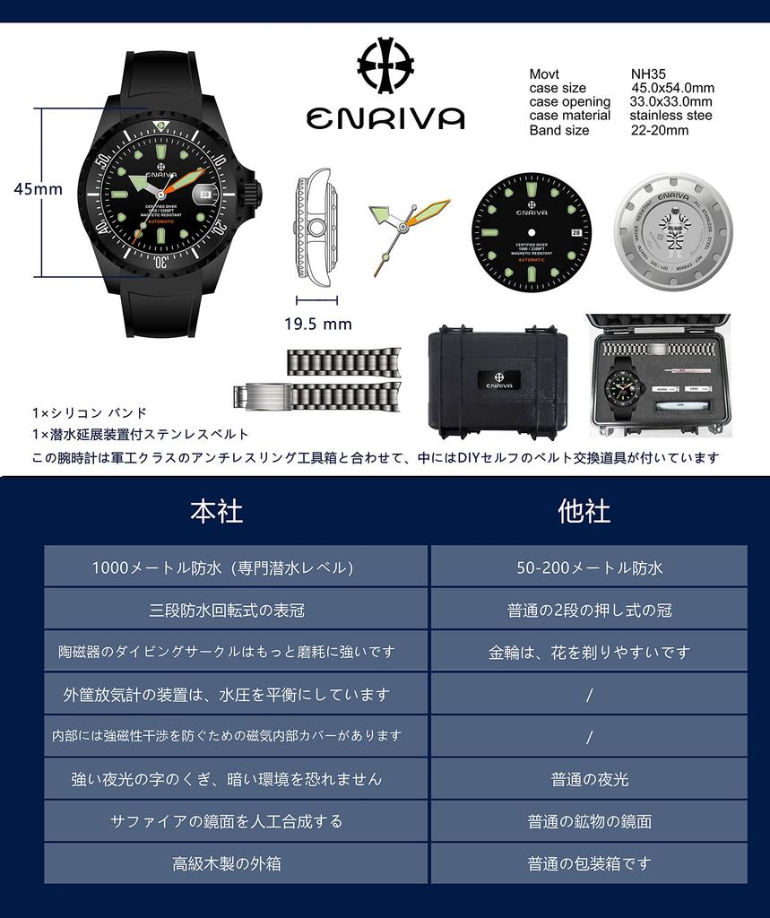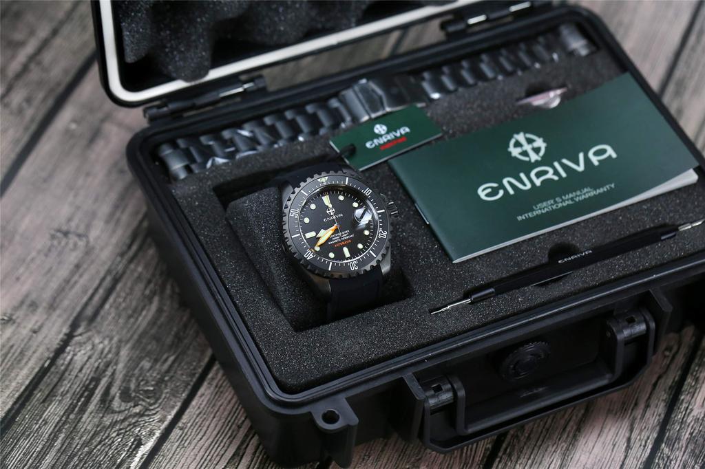 Часы ENRIVA с вращающимся в обратном направлении безелем, автоматические часы с индикацией даты, профессиональная водонепроницаемость 1000 метров, спортивный дайверский стиль, сапфировое стекло, футляр