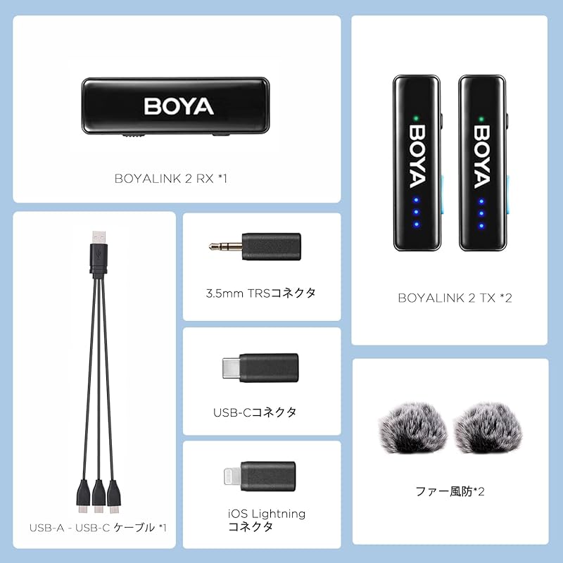 Модернизированный компактный беспроводной микрофон 3-в-1 BOYALINK 2 — это модернизированный универсальный беспроводной микрофон, который обеспечивает более захватывающее и четкое звучание. В комплект поставки приемника входят три сменных адаптера для обеспечения полной совместимости с камерами, мобильными устройствами и компьютерами. Модернизированное двухуровневое шумоподавление и дальность прямой видимости до 300 метров. BOYALINK 2 — идеальный беспроводной помощник для прямых трансляций, создания контента и уличных интервью.