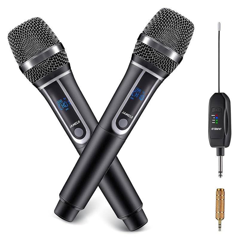 🎤[Рабочее расстояние 100 футов] Сверхвысокочастотное соединение UHF, более сильное проникновение сигнала и защита от помех, довольно стабильное соединение сигнала, идеально подходит для караоке и выступлений на сцене.