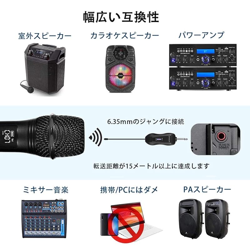 [Широкая совместимость] Оснащен разъемом 6,35 мм, совместим с входным терминальным оборудованием с микрофоном, таким как усилители, микшеры, консоли, активные колонки, автомобили и т. д. Подходит для домашнего караоке, встреч, выступлений, мероприятий на свежем воздухе, представлений, вечеринок, школьных спортивных дней, культурных фестивалей, осмотра достопримечательностей и т. д., где важно высокое качество.