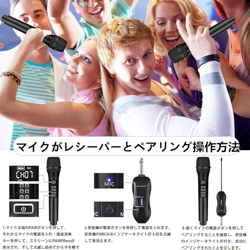 [Автоматическое сопряжение] Просто подключите микрофон и приемник, и они автоматически подстроятся одним касанием, нет необходимости настраивать частоту. Каждый микрофон имеет 10 установленных частотных точек, что позволяет одновременно использовать до 10 микрофонов. (каждый набор используется на разных каналах).Максимально избегайте внешних помех.