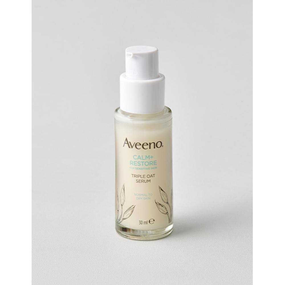 Сыворотка Aveeno Calm & Restoring Triple Oat — это сыворотка эссенциального типа, которая оказывает отличное успокаивающее и увлажняющее действие на кожу.. Содержит тройной овсяный комплекс, который помогает успокоить чувствительную и раздраженную кожу и укрепляет кожный барьер.. Его легкая формула быстро впитывается без липкости и оставляет освежающий финиш.. Защищает кожу от стрессовых факторов окружающей среды и УФ-лучей и помогает поддерживать здоровое состояние кожи, балансируя влагу и жир при регулярном использовании.. Сыворотка прошла дерматологическое тестирование, что гарантирует ее безопасность для чувствительной кожи.