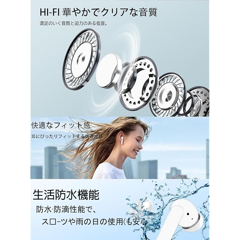 [Удобная посадка и водонепроницаемость IPX7] Корпус имеет эргономичную конструкцию, начиная от структуры ушных отверстий, чтобы плотно и комфортно прилегать к ушам. Легкая конструкция весит всего 4,5 г на ухо, поэтому вы не устанете, даже если будете носить их в течение длительного времени. Они устойчивы даже во время упражнений, и вам не нужно беспокоиться о том, что они выпадут. Оснащенные водонепроницаемостью IPX7, они могут выдерживать не только водонепроницаемость в повседневной жизни, но также дождь и пот. Даже если вы внезапно попадете под дождь во время прогулки, вам не нужно беспокоиться о том, что ваши наушники намокнут или повредятся. Идеально подходят для бега трусцой, бега, йоги, занятий спортом, фитнеса, езды на велосипеде и т. д.