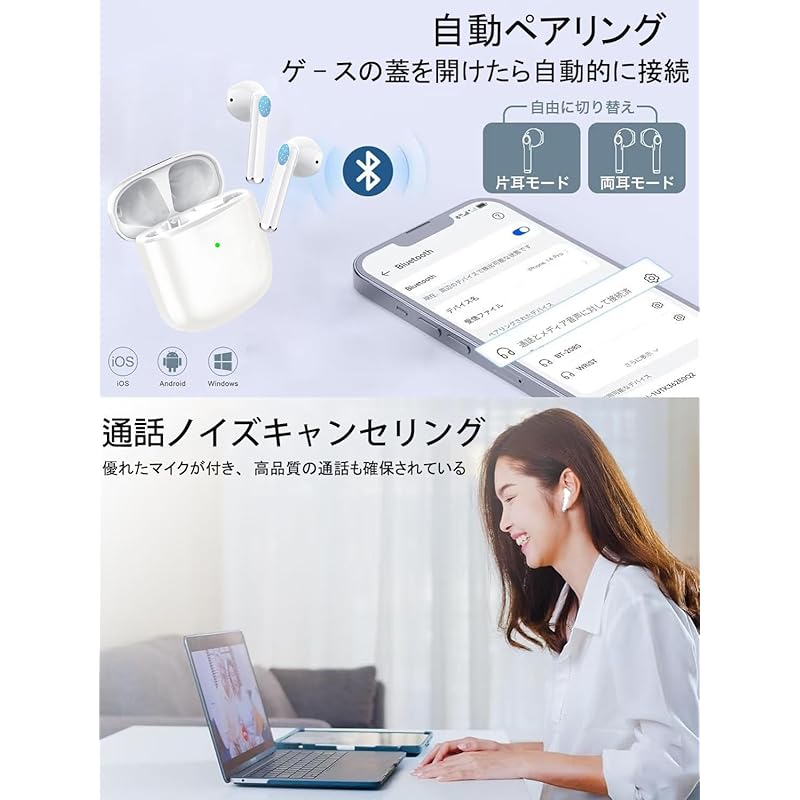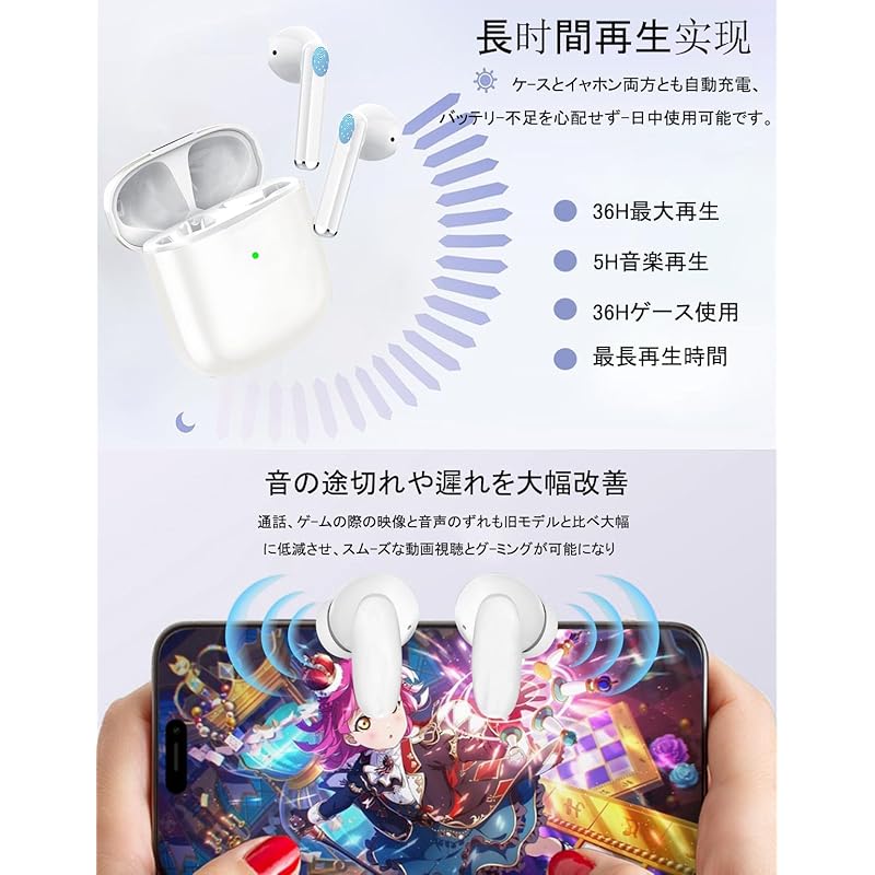 [Мгновенное автоматическое сопряжение и превосходная совместимость] Bluetooth 5.3 отличается малой задержкой, большим радиусом действия и высокой помехоустойчивостью. Срок службы батареи и радиус действия значительно улучшены, а пропуски, прерывания, задержки и шумы сведены к минимуму, что обеспечивает стабильную связь. Совместимость с iOS, Android, Windows и планшетами также была улучшена. Шаги для мгновенного сопряжения: 1. Выньте наушники. ②Включите BLUETOOTH. ③ Автоматическое сопряжение После первого сопряжения при втором использовании вы можете открыть крышку и автоматически подключиться к своему мобильному телефону.