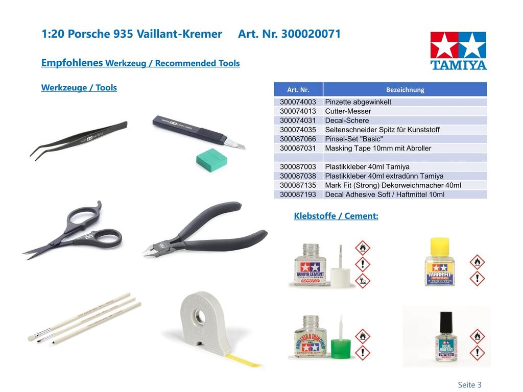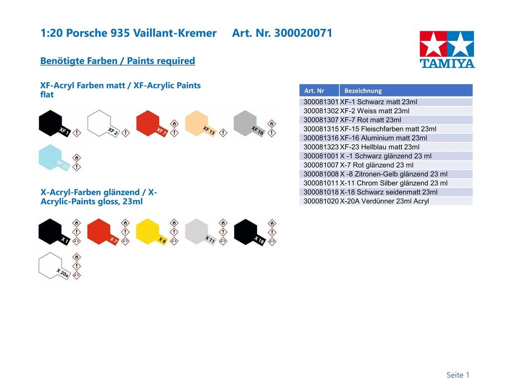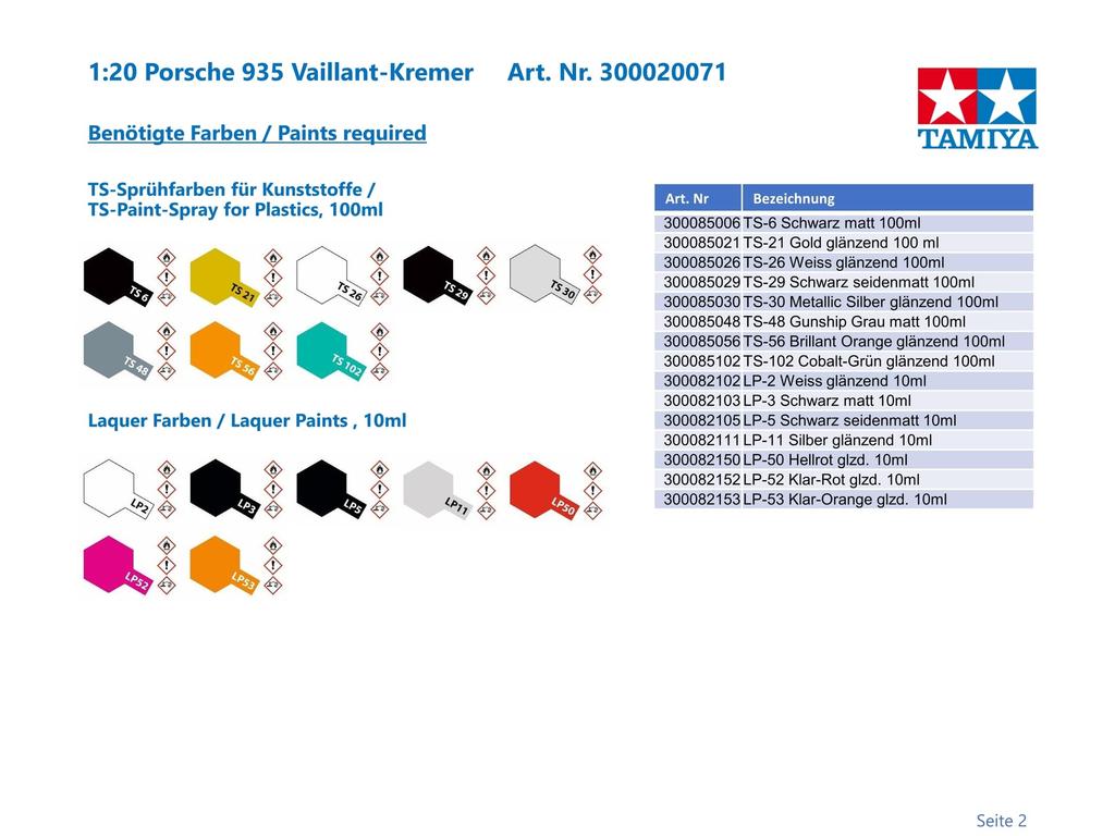 Tamiya Коллекция Grand Prix Series Porsche 935 Vaillant Пластиковая модель 20071 1/20 № 71